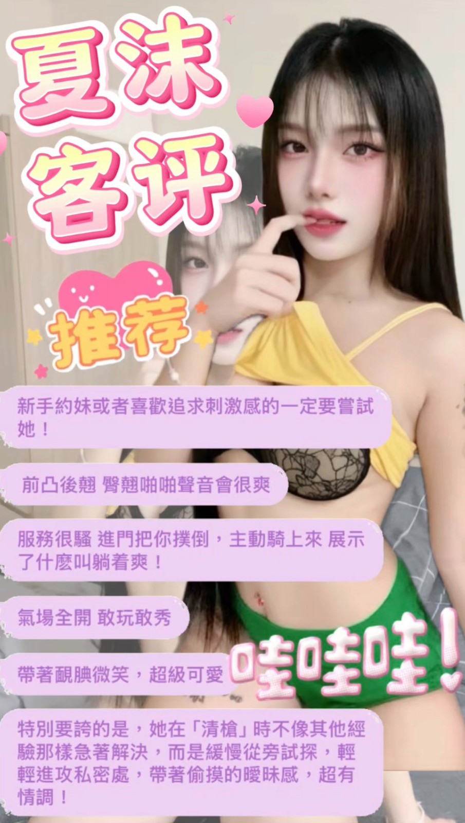 👍項目:無套吹/共浴/親嘴/舌吻/品鮑/69/舔蛋/奶炮/水中蕭/胸推/屁推/按摩