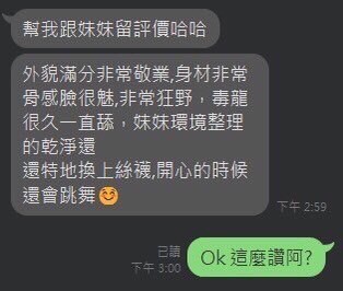 (snapping fingers)服務項目:調情共浴/愛撫調情/無套吹/深喉嚨/毒龍/舔蛋/小親親/LG/屁推/臀推/69/品鮑/奶炮/胸推/潮吹(依貴賓技術而定)/全身紓壓/射後清槍(口爆適用)/白人/入珠