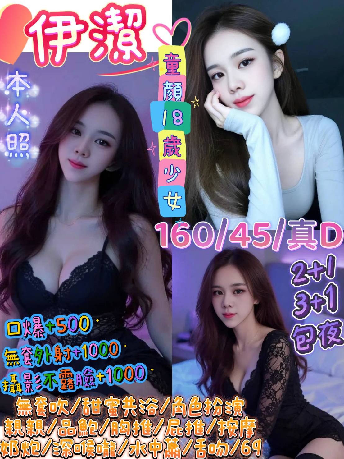 👍項目:無套吹/甜蜜共浴/按摩/角色扮演/親親/69/品鮑/胸推/屁推/奶炮/深喉嚨/水中蕭/舌吻